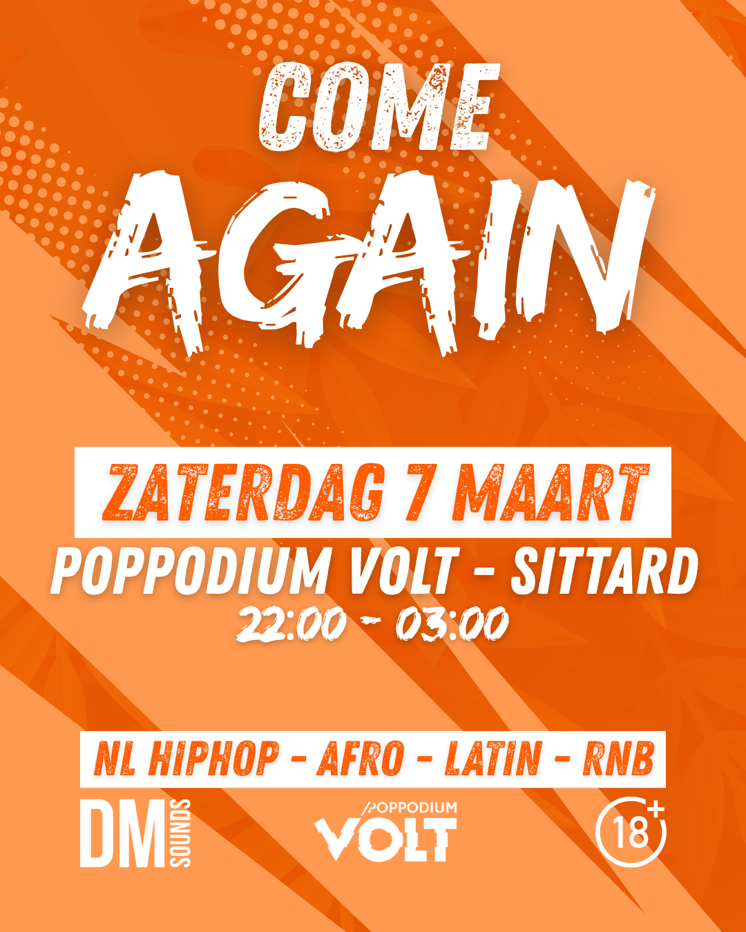 Luister hier naar de officiële sound van Come Again op Spotify met de lekkerste Nederlandse hiphop, afro, latin & urban hitjes! Van Frenna tot Kybba en van Drake tot Ne-Yo... Ze komen allemaal voorbij!